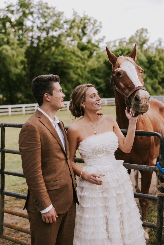 Julia and Brad’s wedding day felt exactly like a family reunion. It was held in Julia’s parents’ backyard, filled with personal touches that made their day so special. These two grew up with one another, so both of their families knew each other so well—which made it feel like good friends just getting together again. Tucked in the mountains of Roanoke, Virginia, they made their vows to each other on their wedding day and had the most wonderful reception to follow. Guests hung out by the pool while some went to pet the horse and donkeys. It was seriously a wedding for the books. The emotion from each and every person showed the immense love they all have for these two and their love for each other was so evident in every interaction! The day came together so beautiful thanks to the amazing team that was there. I have attached all of the amazing vendors below!