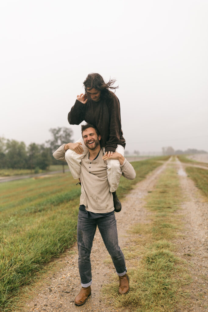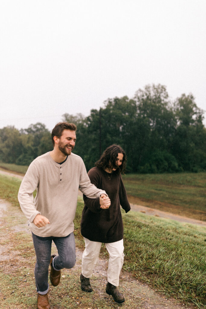 Tucked away by the Mississippi River in Baton Rouge, Carly, Justin, and I ran around while the rain came pouring down. I had been dreaming of a rainy, adventurous engagement session for so long, and they were all in. We ran, we laughed, and we embraced the chaos as it literally POURED on us. They were down for anything, and it made the entire experience unforgettable.